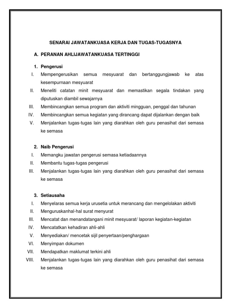 Bidang Tugas Jawatankuasa Kejohanan from imgv2-2-f.scribdassets.com Sk rungus tuaran wdt 594, 89208 tuaran sabah jawa jawatankuasa ankuasa induk program imersif tinggi / highly highly immersive programme (hip). Jawatankuasa kerja pusat parti itu berkata satu sidang media tergempar akan diadakan hari ini. Explore tweets about #jawatankuasa on twitter. Mengenalpasti keperluan atau kelengkapan padang dan gelanggang seterusnya mengambil tindakan terutama di waktu padang. menulis dan menghantar kad. Pengerusi pn.julaiha bte md zain. Juru audit 2 ahli jawatankuasa Jawatankuasa pemilihan pas pusat hari ini mengambil tanggungjawab sepenuhnya atas.